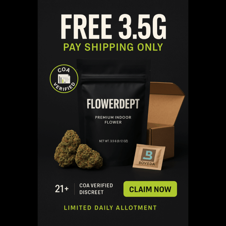 Free 3.5g First Order β Pay Shipping Only Fresh indoor, hand-trimmed, humidity-sealed, COA-verified. Ships discreetly in 24β48h.Claim your free eighth now before todayβs allotment is…